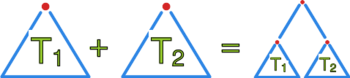 (czyli działanie na drzewach <math>T_1</math> i <math>T_2</math> polega na dodaniu jednego wierzchołka, który jest nowym korzeniem, a jego lewym i prawym dzieckiem są odpowiednio drzewa <math>T_1</math> i <math>T_2</math>). | |||
