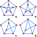 <quiz>Który z grafów przedstawionych na Rysunku 2 jest homeomorficzny z kliką <math> | <quiz>Który z grafów przedstawionych na Rysunku 2 jest homeomorficzny z kliką <math>\mathcal{K}_{5}</math> ? | ||