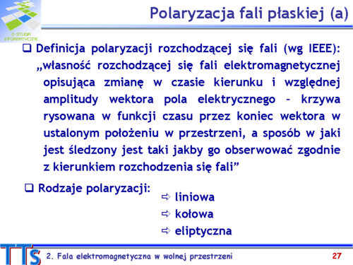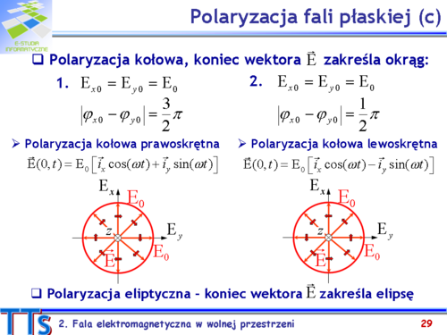 Omówimy również rodzaje polaryzacji płaskiej fali elektromagnetycznej. | |||