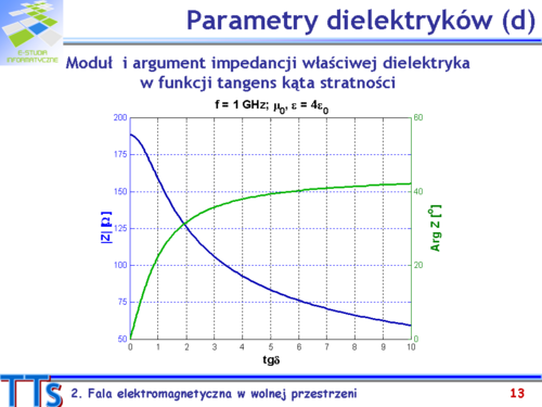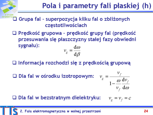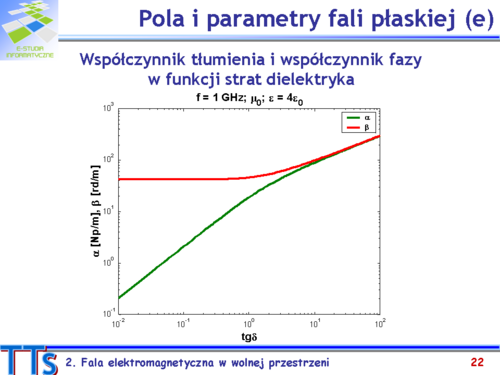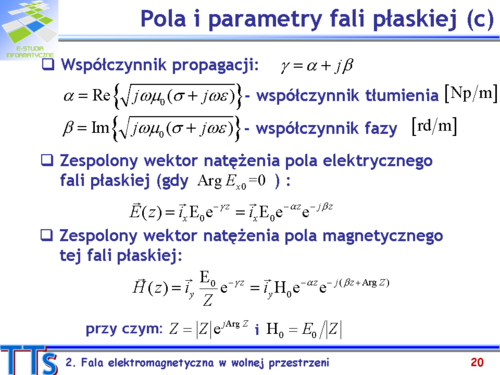 - Stała propagacji – funkcja parametrów materiałowych ośrodka (zal 2-38). Wartość decyduje o szybkości zmian parametrów fali wzdłuż kierunku propagacji.