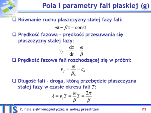 - Stała fazowa część urojona stałej propagacji, decyduje o szybkości zmian fazy fali ( zal. 2-51b, 2-52b).