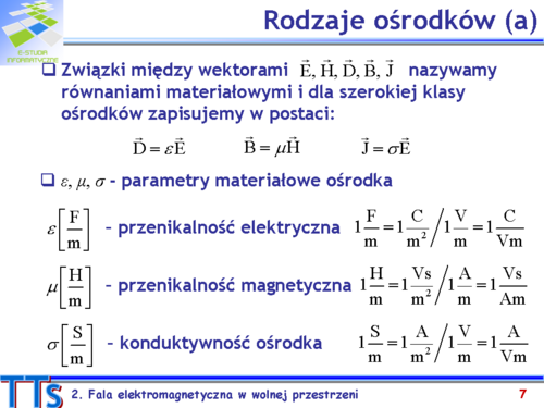 - Przenikalność dielektryczna i magnetyczna -Podstawowe parametry opisujące właściwości przestrzeni odpowiednio dla pola elektrycznego i magnetycznego.