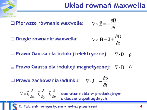 - I prawo Maxwella - z pierwszego równania Maxwella widać że zmienne pole magnetyczne jest źródłem zmiennego pola elektrycznego