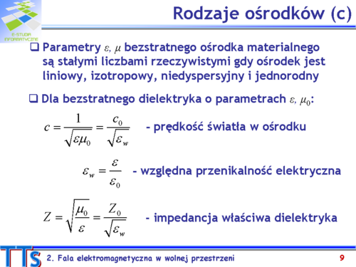 - Ośrodki dyspersyjne i niedyspersyjne. Parametry materiałowe ośrodka dyspersyjnego zależą a ośrodka niedyspersyjnego nie zależą od częstotliwości.