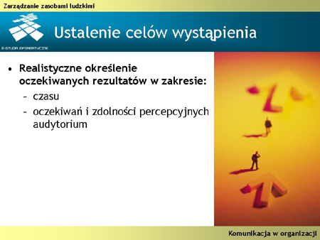 • Co musi być zakomunikowane, aby cele wystąpienia zostały zrealizowane?