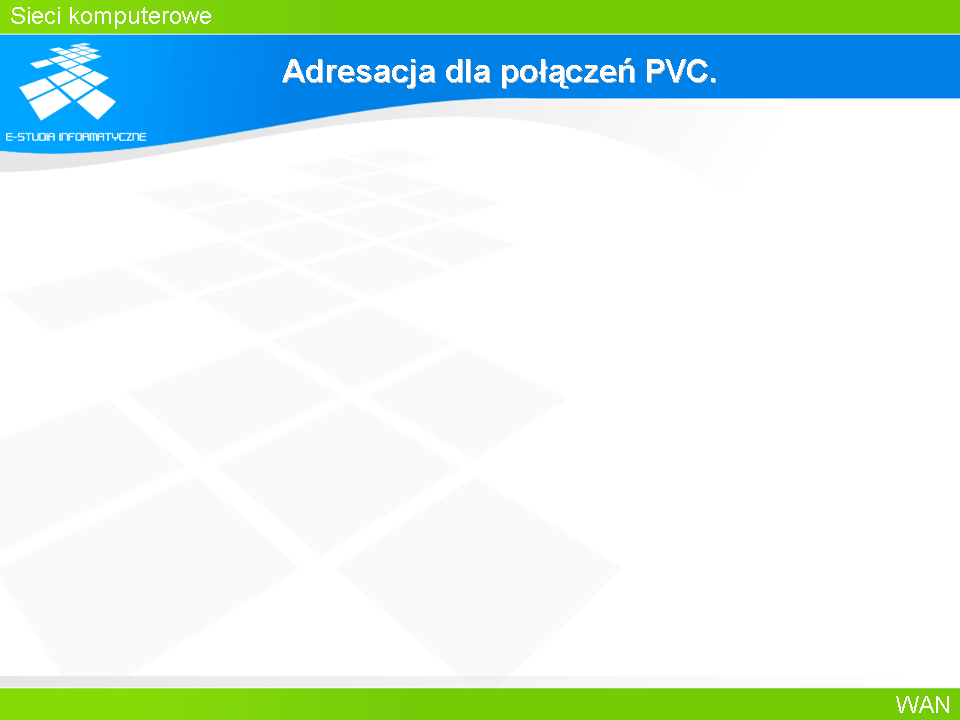 W sieci ATM dwa komunikujące się urządzenia dla celów transmisji muszą zestawić lub mieć zestawione połączenie. Standard ATM definiuje dwa typy połączeń: stały obwód wirtualny PVC (ang. Pernament Virtual Circuit) - tego typu obwód jest zestawiany przez administratora. Administrator w zależności od sprzętu konfiguruje porty urządzeń, trasę poprzez przełączniki, adresy oraz, jeśli trzeba, parametry określające jakość transmisji; przełączany obwód wirtualny SVS (ang. Switched Virtual Circuit) - tego typu obwód jest zestawiany na żądanie za pomocą protokołów sygnalizacyjnych. Protokoły zapewniają zestawienie połączenia poprzez przełączniki z żądaną jakością transmisji. Podczas zestawiania trasy, każdy przełącznik ATM sprawdza możliwość spełnienia wymaganych warunków transmisji. W wypadku posiadania odpowiednich zasobów przełącznik przesyła żądanie do następnego przełącznika. Po zestawieniu połączenia nadawany jest 24-bitowy identyfikator określający wirtualny kanał i ścieżkę. W koncepcji ATM, w ramach pojedynczego łącza fizycznego, są transmitowane komórki należące do różnych połączeń. Nie są one identyfikowane adresami nadawcy i odbiorcy, jak np. w sieci IP, ale są rozróżniane na podstawie zawartości pół VPI (ang. Virtual Path Identifier) oraz VCI (ang. Virtual Channel Identifier). Komórki mające te same identyfikatory VPI i VCI tworzą wirtualny kanał, który realizuje jednokierunkowy transport komórek. W celu realizacji połączenia dwukierunkowego należy zestawić parę połączeń. W sieci ATM realizuje się połączenia typu VCC (ang. Virtual Channel Connection), które jest połączeniem pomiędzy dwoma punktami dostępu do sieci ATM. Połączenie składa się z wielu logicznych łączy VCL ( ang. Virtual Channel Link). Łącza VCL mają znaczenie lokalne i są identyfikowane poprzez zawartość pola VCI w nagłówku komórki należącej do połączenia. Zawartość VCI może się zmieniać po przejściu przez kolejne węzły sieci powodując zmiany VCL. Połączenia VCC mogą mieć strukturę wielopunktową, która może być wykorzystana w przypadku transmisji rozgłoszeniowych. Wirtulany kanał składający się z wyznaczonej poprzez VCL trasy gwarantuje integralność i sekwencyjność komórek ATM. Kanał może się cechować określonym pasmem przenoszenia. Parametry kanału są negocjowane w trakcie nawiązywania połączenia. Grupa kanałów tworzy wirtualną ścieżkę VP (ang. Virtual Path), która również może mieć przypisane pasmo. Sieć ATM może realizować połączenia typu VPC (ang. Virtual Path Connection), które może być zainicjowane w punkcie dostępu do sieci lub w węzłach o odpowiednich uprawnieniach. Połączenia VPC, podobnie jak VCC, składają się z wirtualnych łączy VPL (ang. Virtual Path Link), które są identyfikowane poprzez pole VPI. Pole to może ulegać zmianie podczas transmisji, podobnie jak pole VCI. Połączenie typu VPC jest połączeniem jednokierunkowym i dla transmisji dwukierunkowej należy zestawić dwa połączenia. Połączenia VPC pozwalają operatorom na zestawienie połączenia dla klienta, który potrzebuje posiadać wiele wirtualnych kanałów. Wzajemne relacje pomiędzy kanałami i ścieżkami ilustruje slajd.